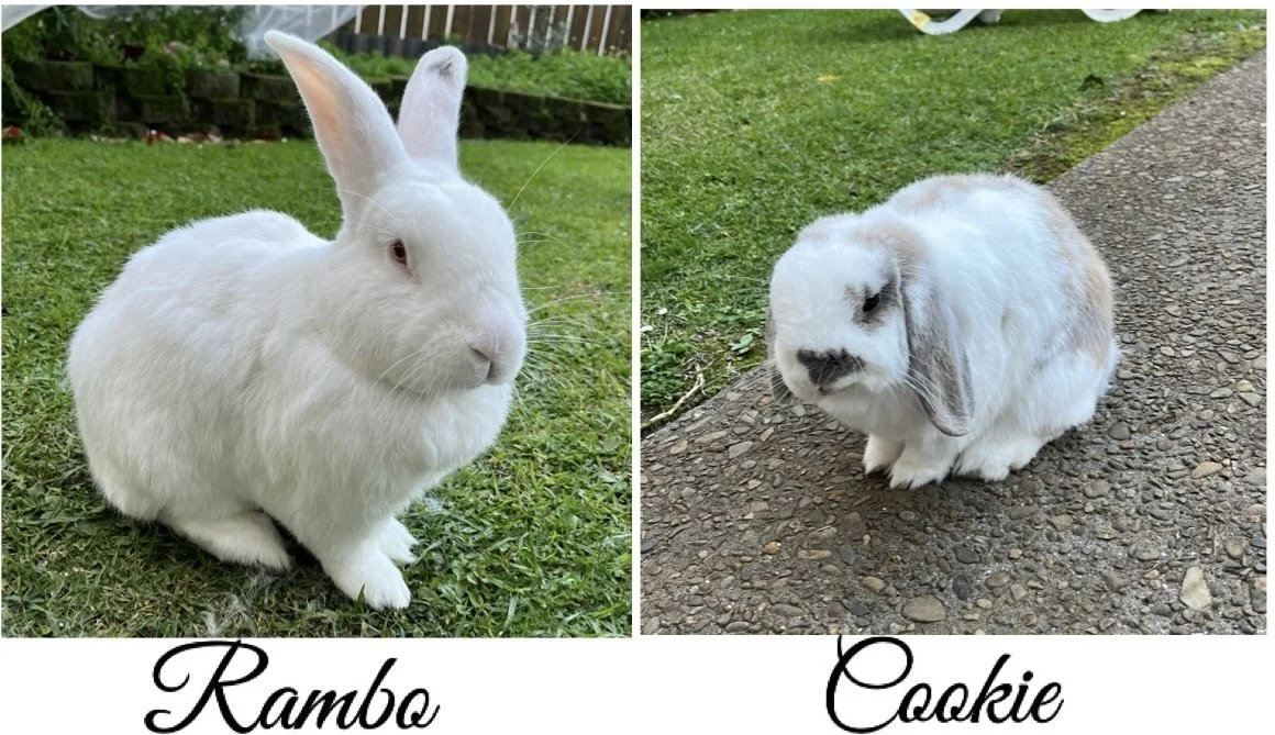 Both are free roaming rabbits, looking for their new forever home. Both rabbits are friendly, Rambo loves cuddles and a good scratch... Cookie on the other hand is a bit mischievous when playing outdoors, he is always looking for new hiding spots and his curiosity takes over sometimes. . I am also happy to provide their remaining pallets and hay, as well as any remaining rabbit treats (if they don’t finish it all by then).