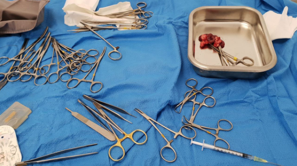 Our sterile theatre all set up and ready. Bun is then transferred from the prep room into surgery.