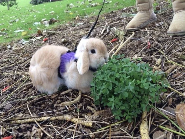 A harness is slightly better but also carries risks – especially if your rabbit escapes whilst wearing it.