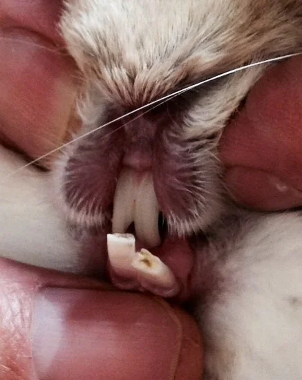 Unfortunately there are still people that claim it is safe and ok to trim maloccluded incisors - either with clippers or a dremel. Not only does this run the risk of cracking or shattering the teeth, it can also shatter the jaw.