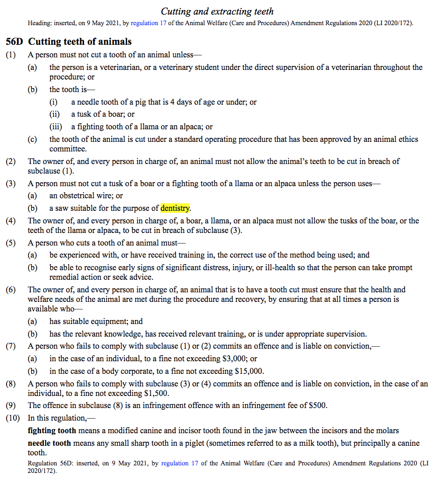 The Law as it stands in NZ in relation to the trimming of maloccluded incisors -
