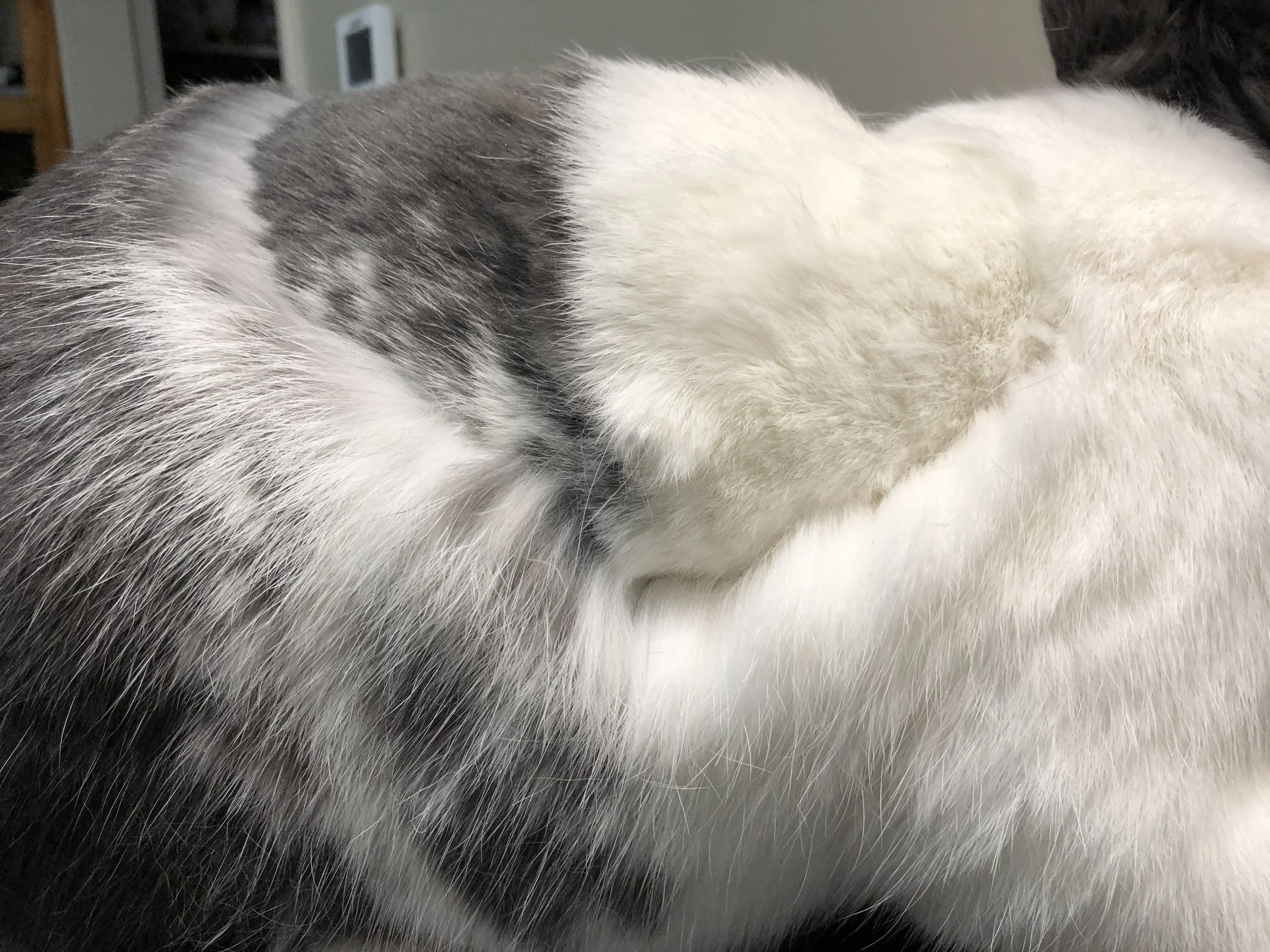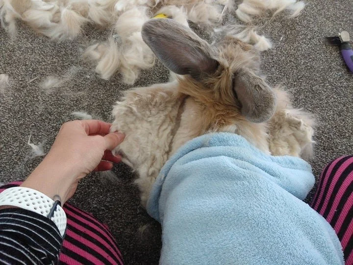 * If the bunny has mats very close to the skin, take as much off the top as you can, tease the top out and let the matt ‘bloom’ and grow out some more so that it can be more safely cut out.