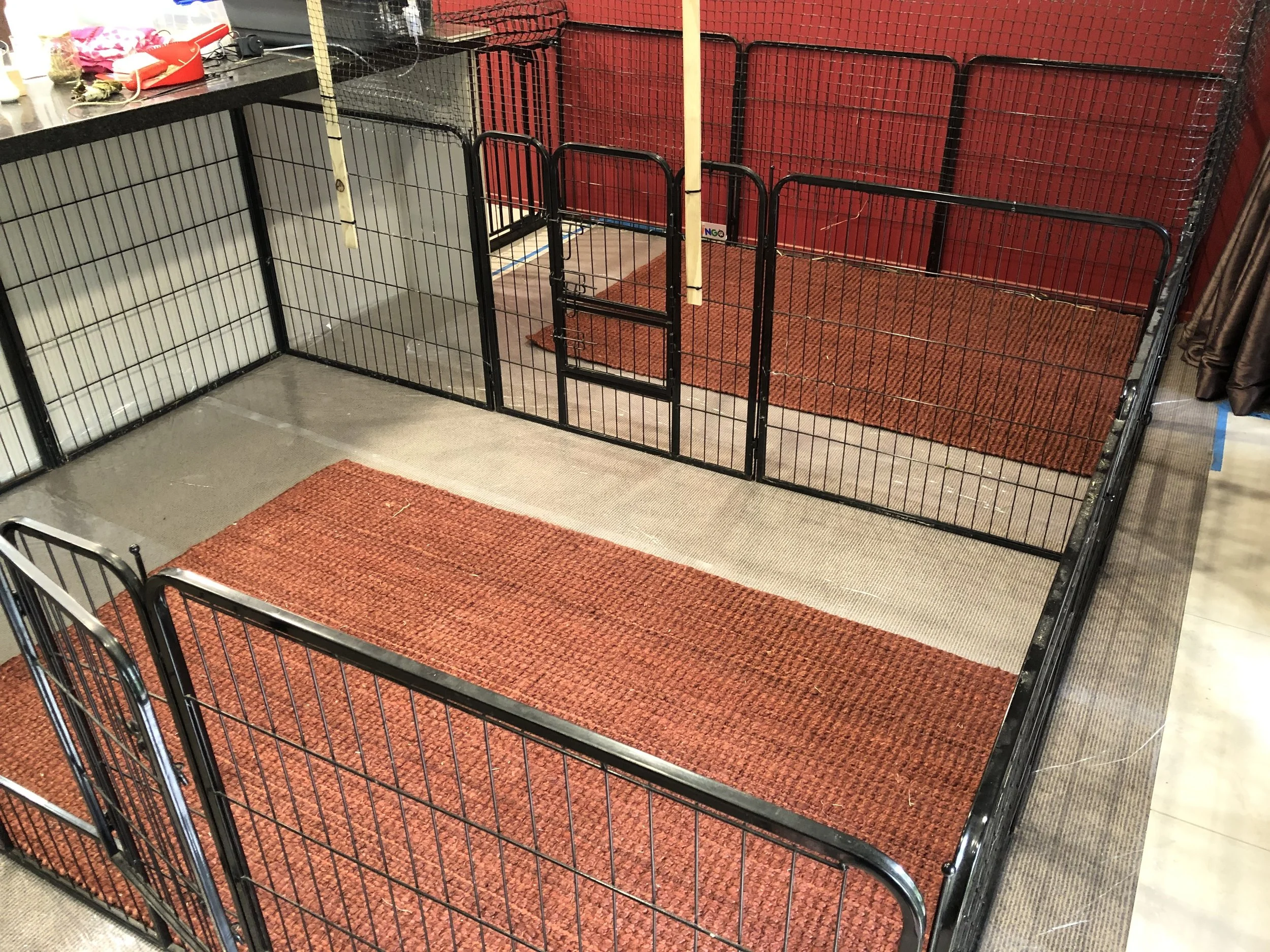 This is an example of how pens can be used to make a secure and roomy indoor 'bedroom'. This pen houses my two large buns overnight and also when I am not home. If they are inside for the day they free roam the adjoining lounge area. They also have access to a 9m x 3m patio in addition to a Zippi tunnel system leading to both a digging chamber and a ‘grass’ pen for outside enrichment during the day.