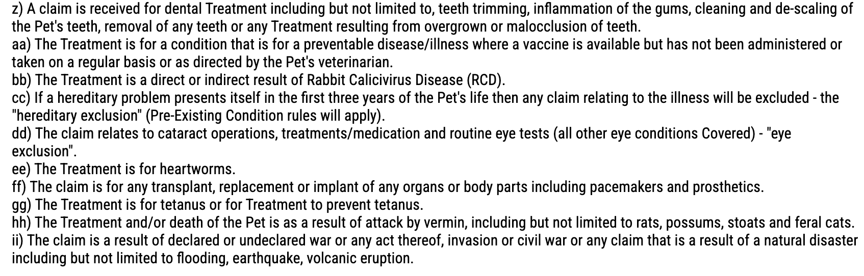 As you can see, the list of exclusions is pretty extensive for both companies.