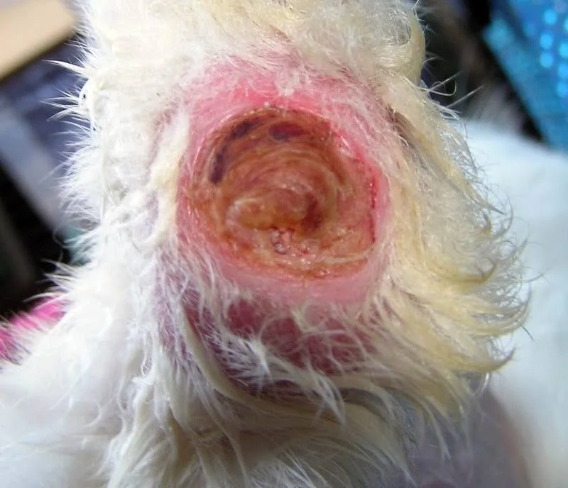Pododermatitis, often called “sore hocks”, is a chronic, granulomatous, ulcerative dermatitis, which most commonly affects the plantar aspect of the caudal metatarsal and tarsal areas of rabbits.