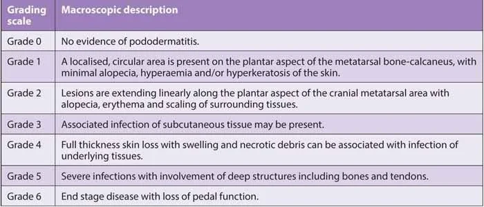 This is a scale which explains how to identify the severity of the Pododermatits.