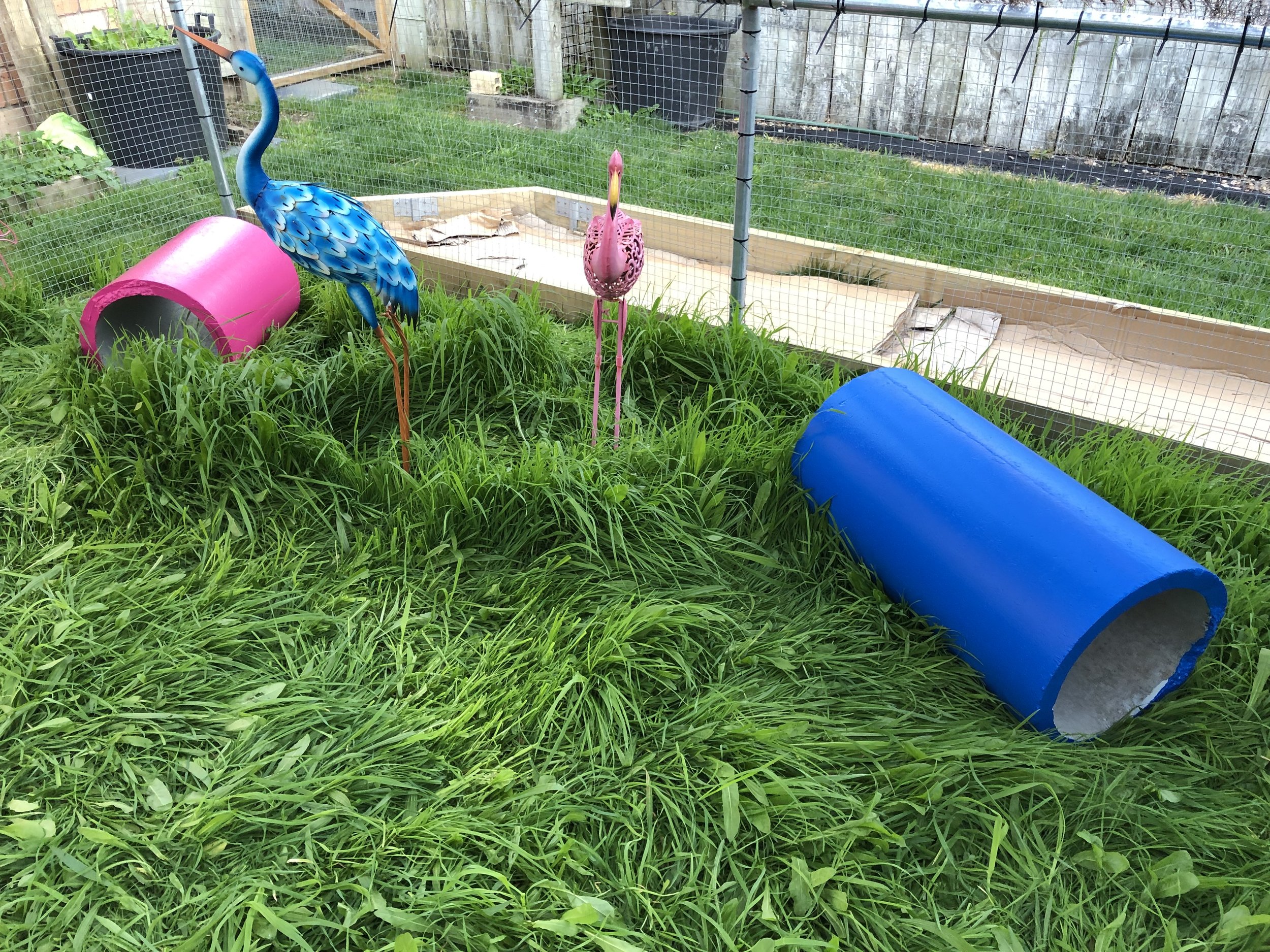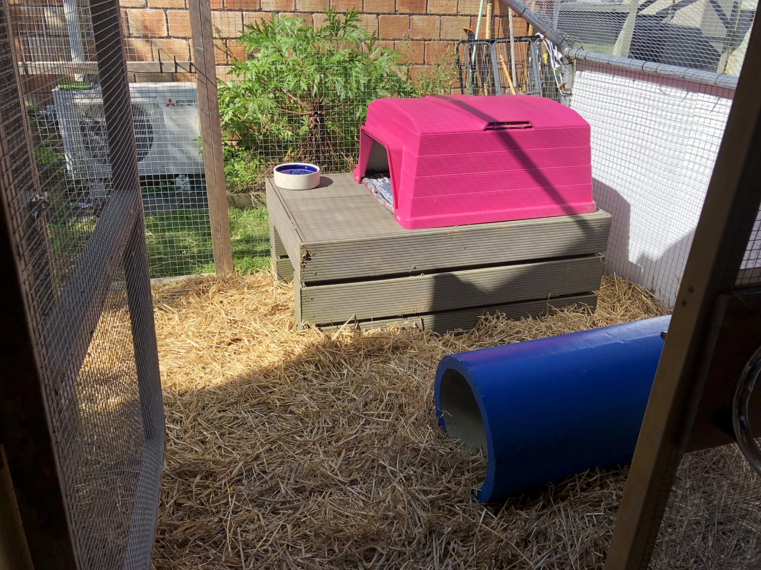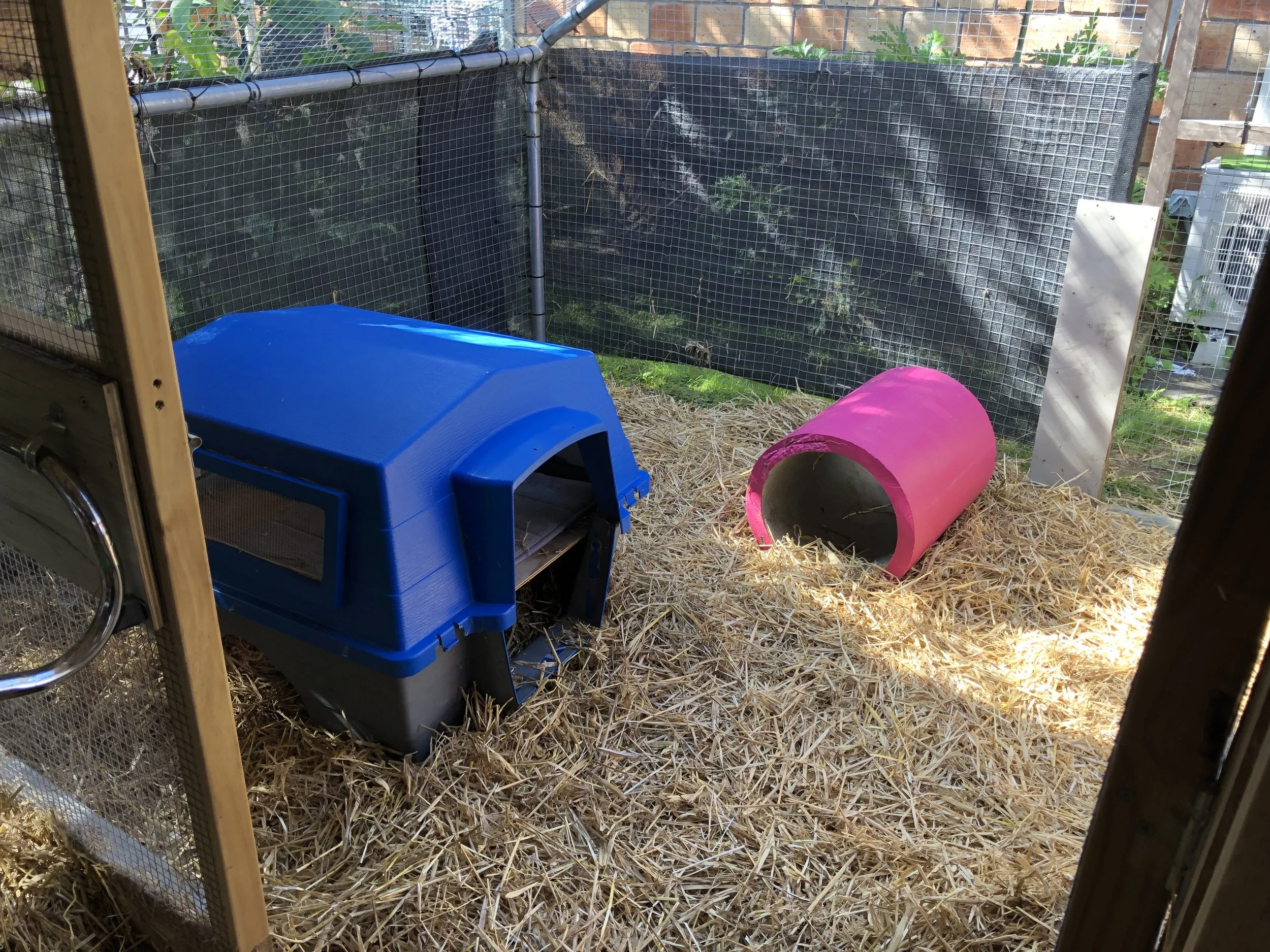 These tunnels came up from the Landfill shop in Wellington compliments of my son. They’ve been used in a few locations, initially in Westley and Buttercup’s outdoor enclosure. Latterly, after they were painted (same method as above) they’ve been used in the Cabuna where they provide a cool place to chill out on hot days.
