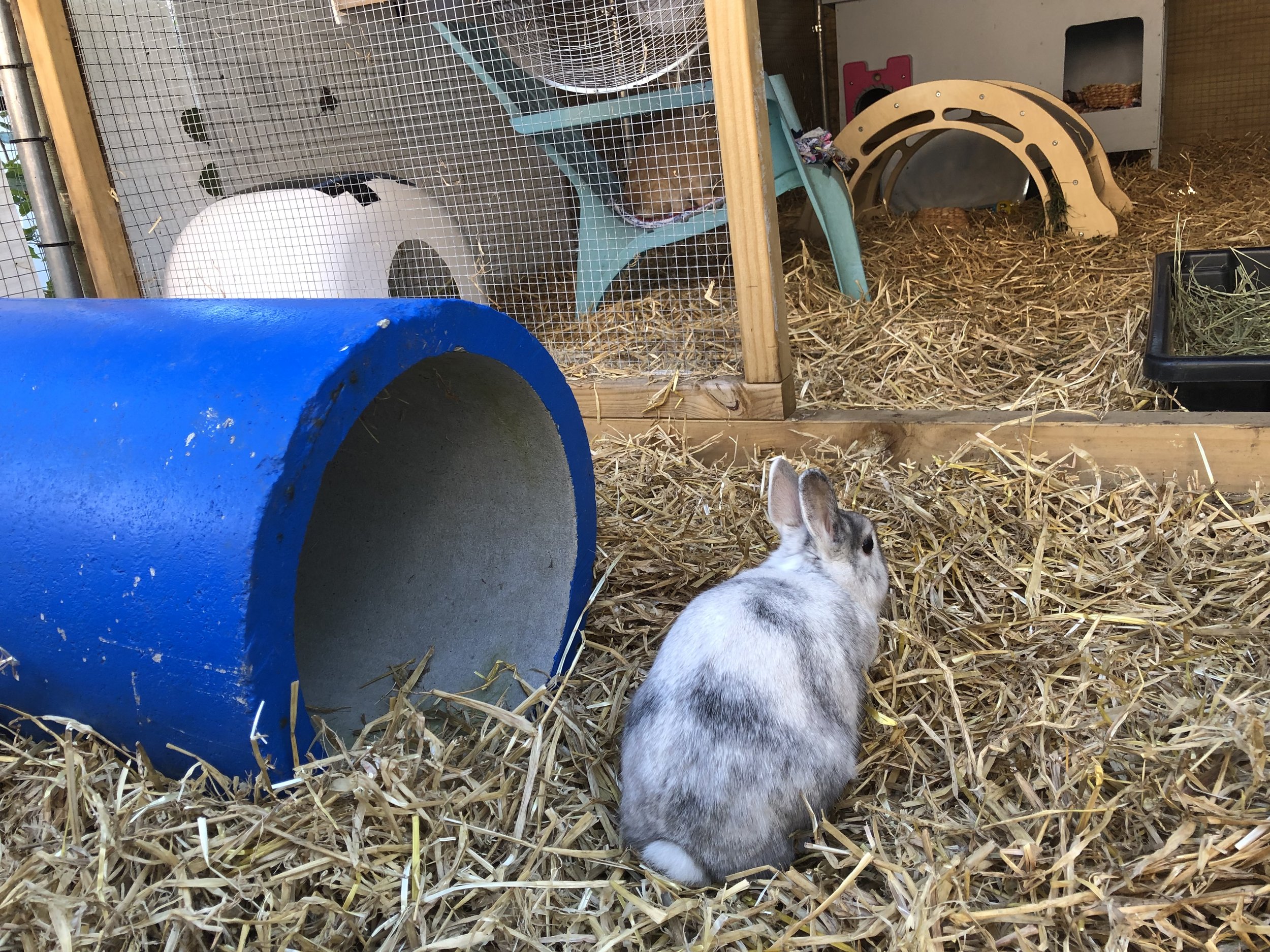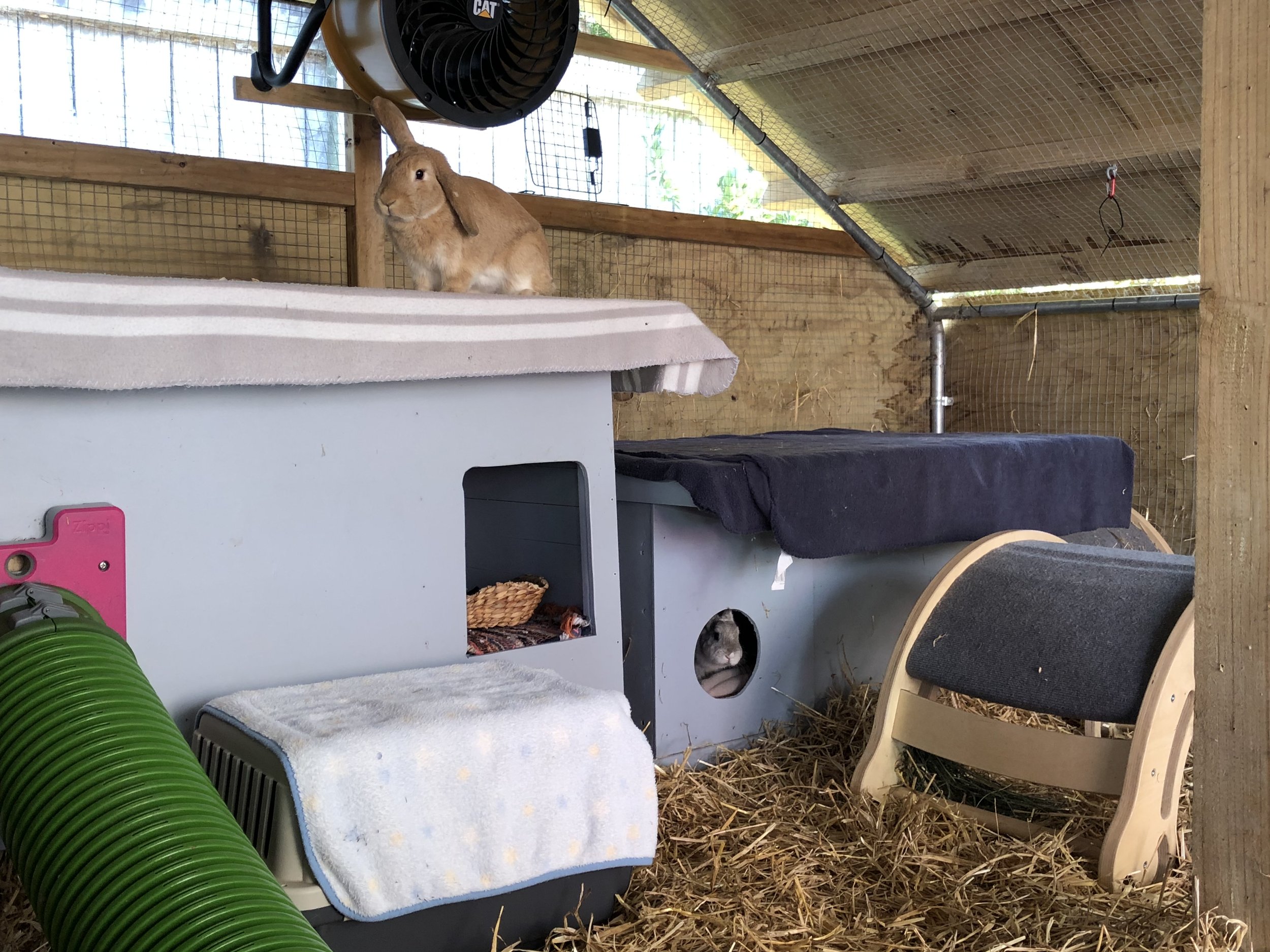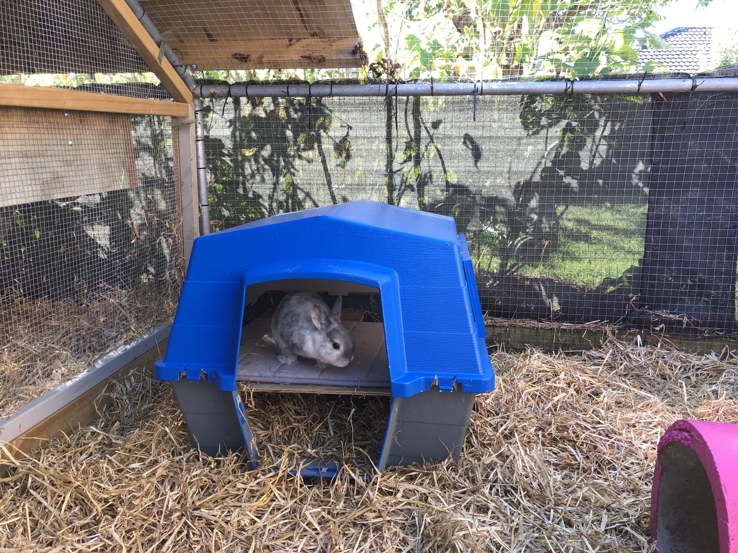 The resulting unit has proven to be popular with the rabbits - who especially love using the Zippi tunnel to enter and exit the house. The large top is also very popular with the buns as an elevated resting space.