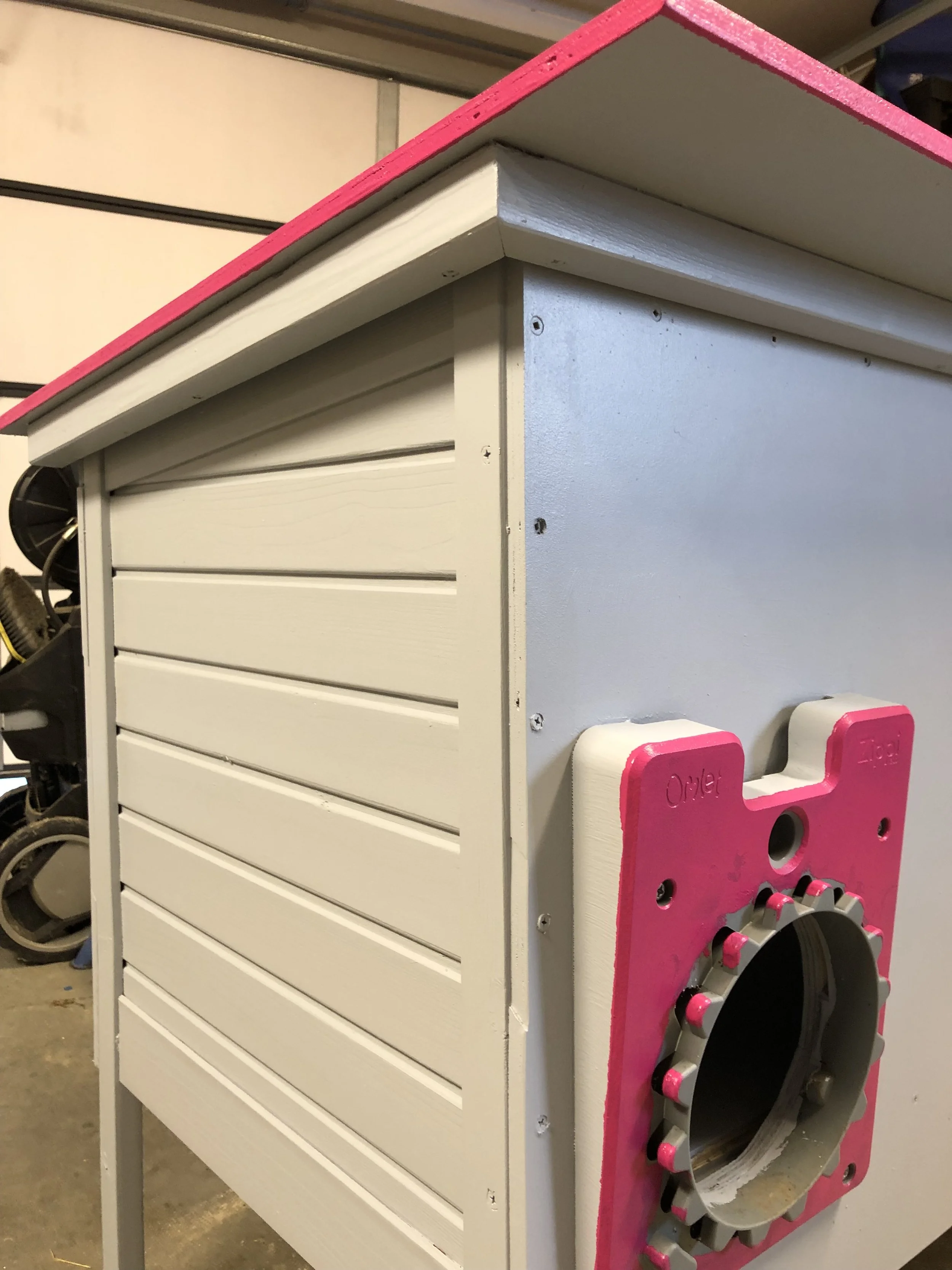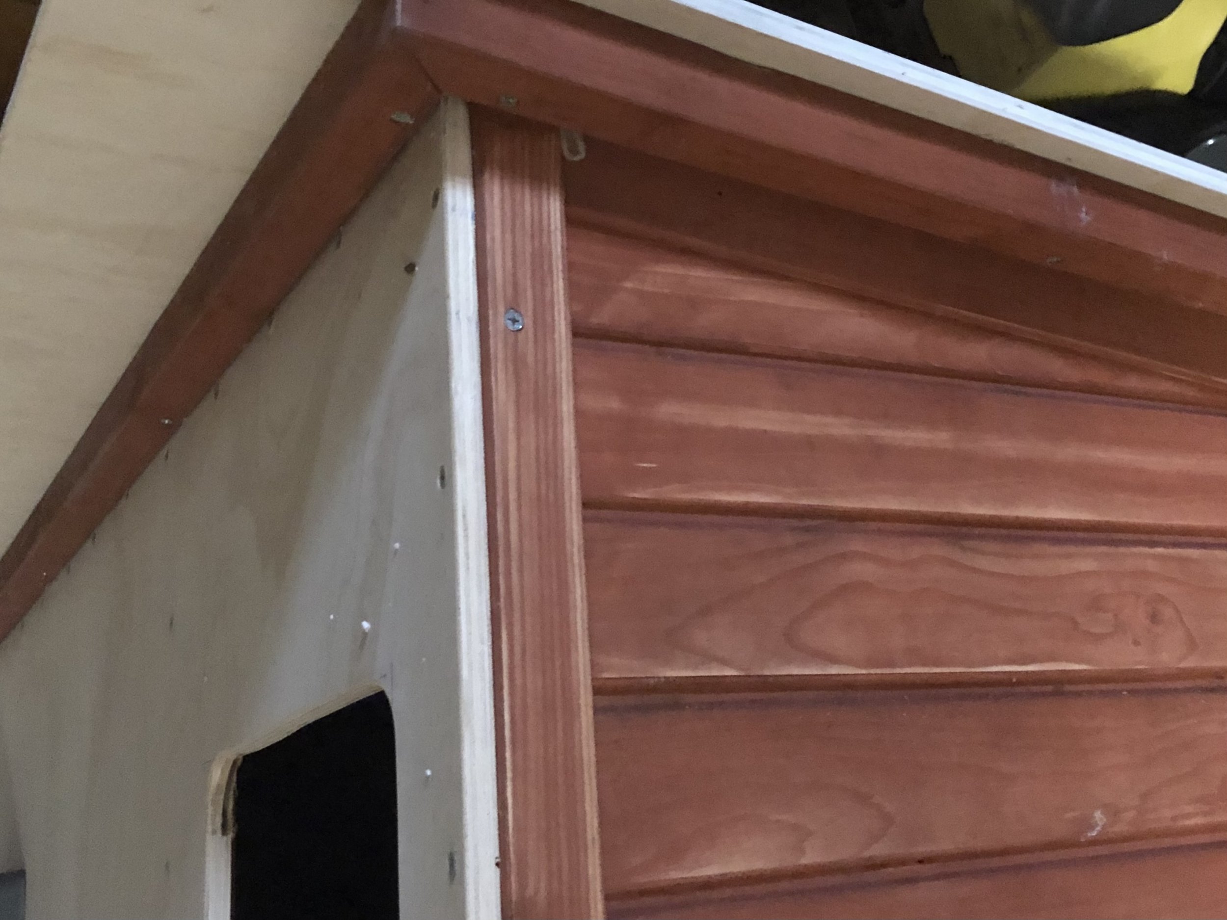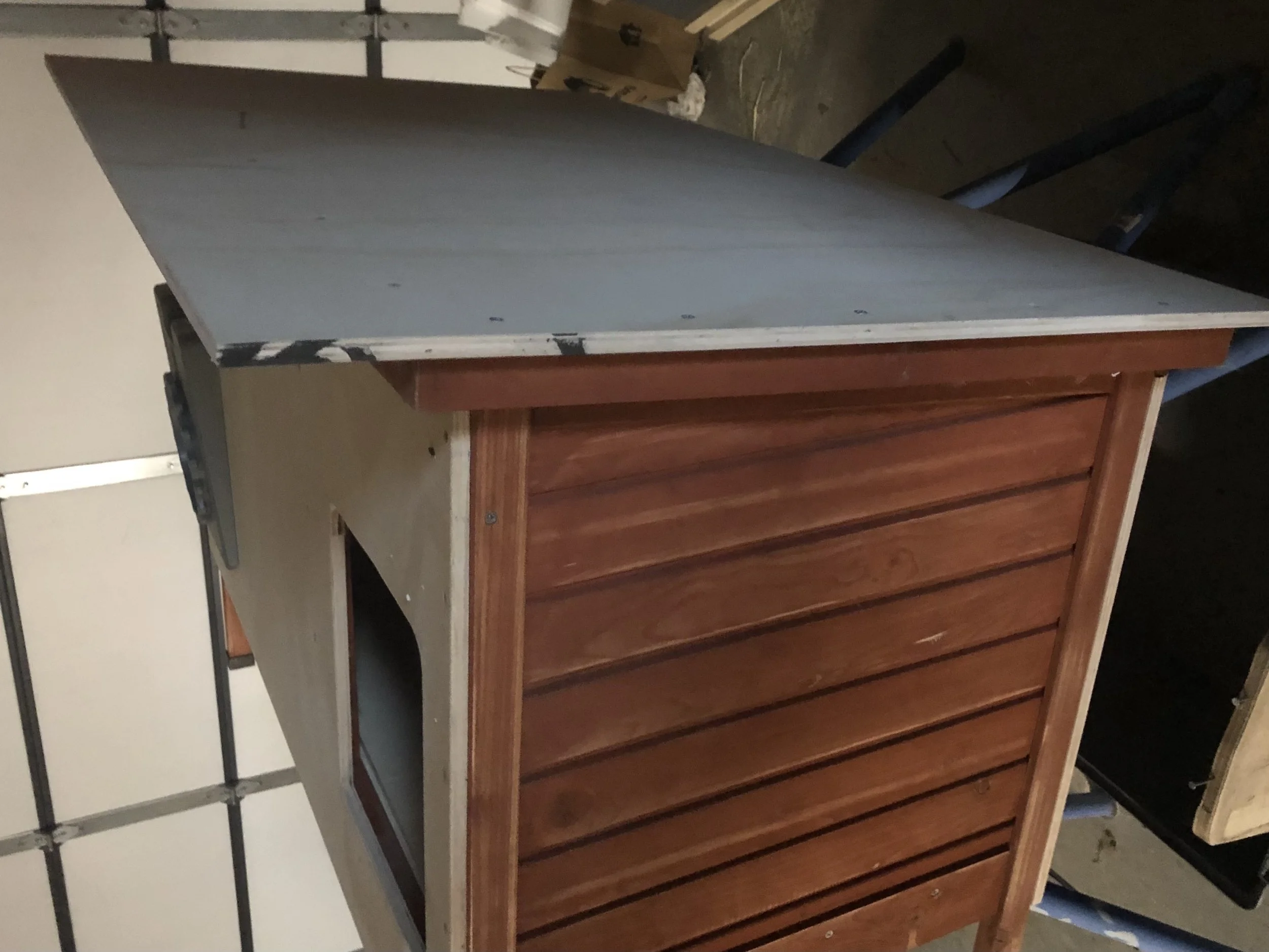 The Kennel top was treated with an anti mould product, then water blasted before being left to dry in the sun. Once dry it was primed with Resene Smooth Surface Sealer and then painted with 3 coats of Resene Lustacryl.
