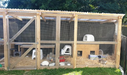 RUBY STAY HOME - below. These runs are more expensive but are excellent quality which don't require the same modifications as the others. They can also have panels added to increase their size when funds allow. They would be best with a secure solid roof. Masterton SPCA use these runs and absolutely swear by them.