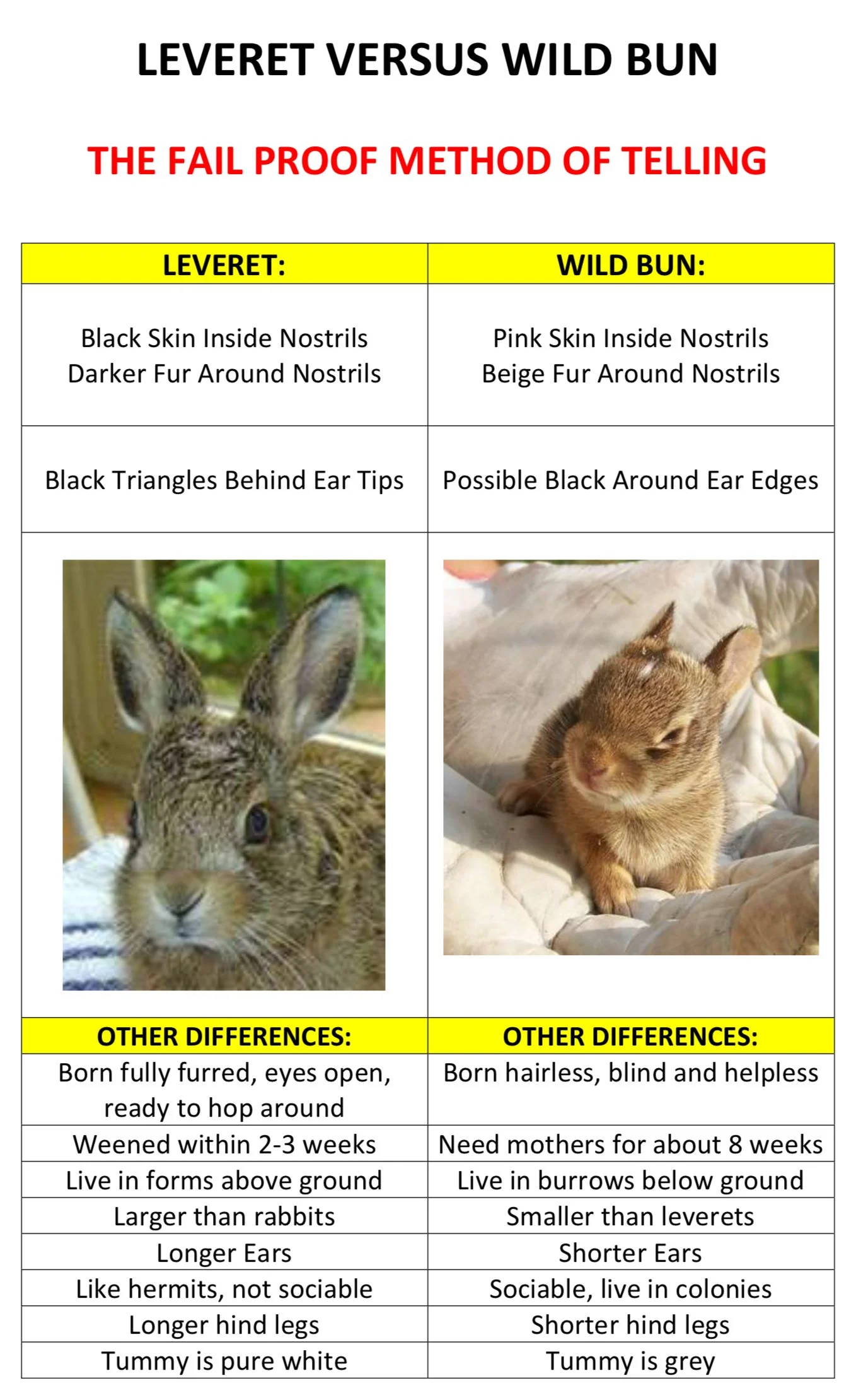 It is important to establish whether the baby you’ve found is a Leveret or a Kit because they need very different care and the long term outcomes for each are poles apart.